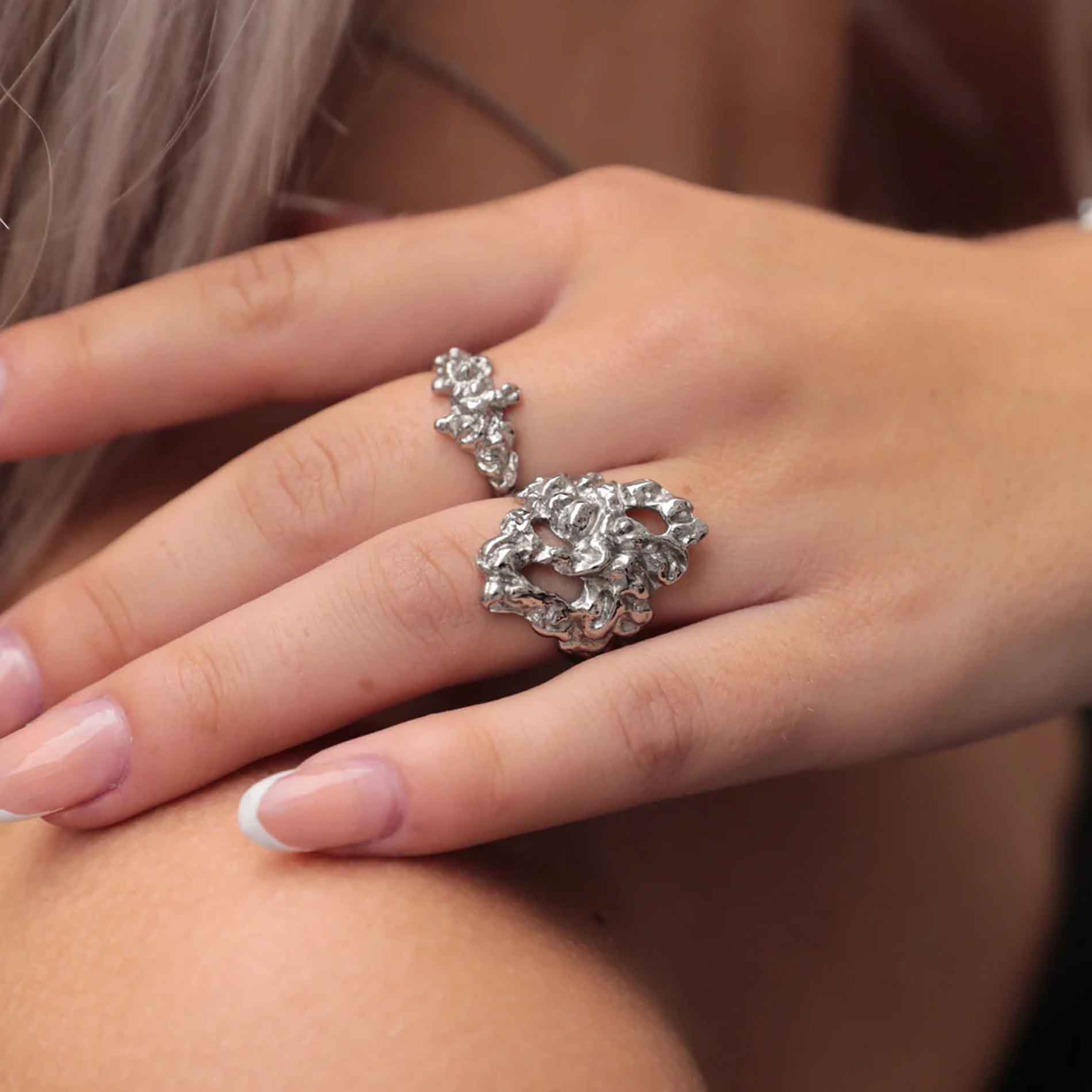 Tilføj et strejf af elegance til dit outfit med denne smukke Sistie 2nd x Xenia ring i rustfrit stål. Ringen er designet med en detaljeret bølget overgang, der giver den et unikt og raffineret udtryk, perfekt til enhver lejlighed, fra hverdagsbrug til festlige begivenheder. Du kan nemt mikse denne ring med andre smykker for at skabe dit helt eget personlige look.