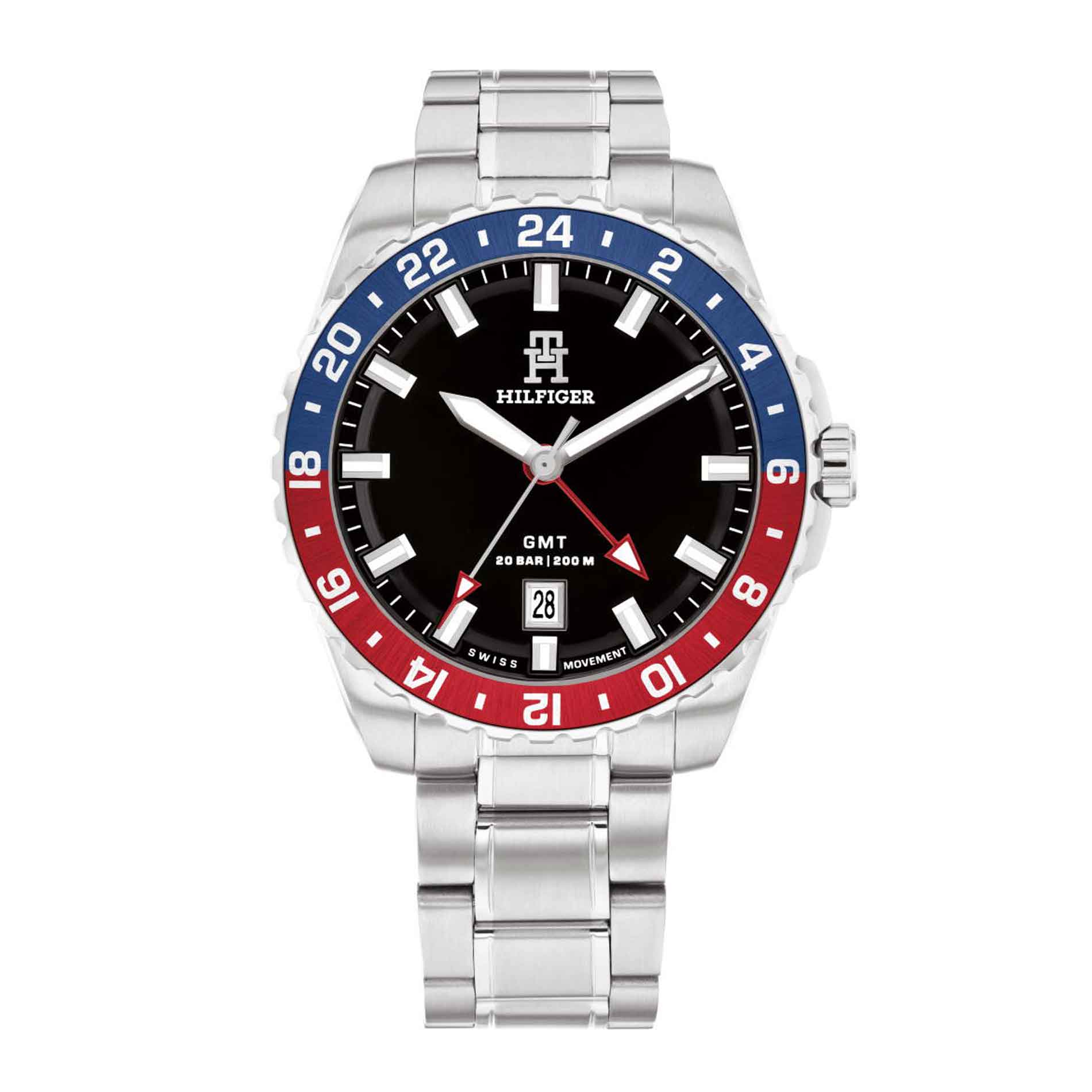 Oplev stil og præcision med Tommy Hilfiger TH85 GMT, et ur designet til den moderne mand. Med en elegant sort skive, en robust rustfri stållænke og en kombineret blå/rød krans, fremstår dette ur som et tidløst stykke. Drevet af et kvarts urværk og beskyttet af mineralglas, er TH85 både pålidelig og holdbar. Med en vandtæthed på op til 20 ATM, er det perfekt til både hverdagsbrug og udendørs eventyr.