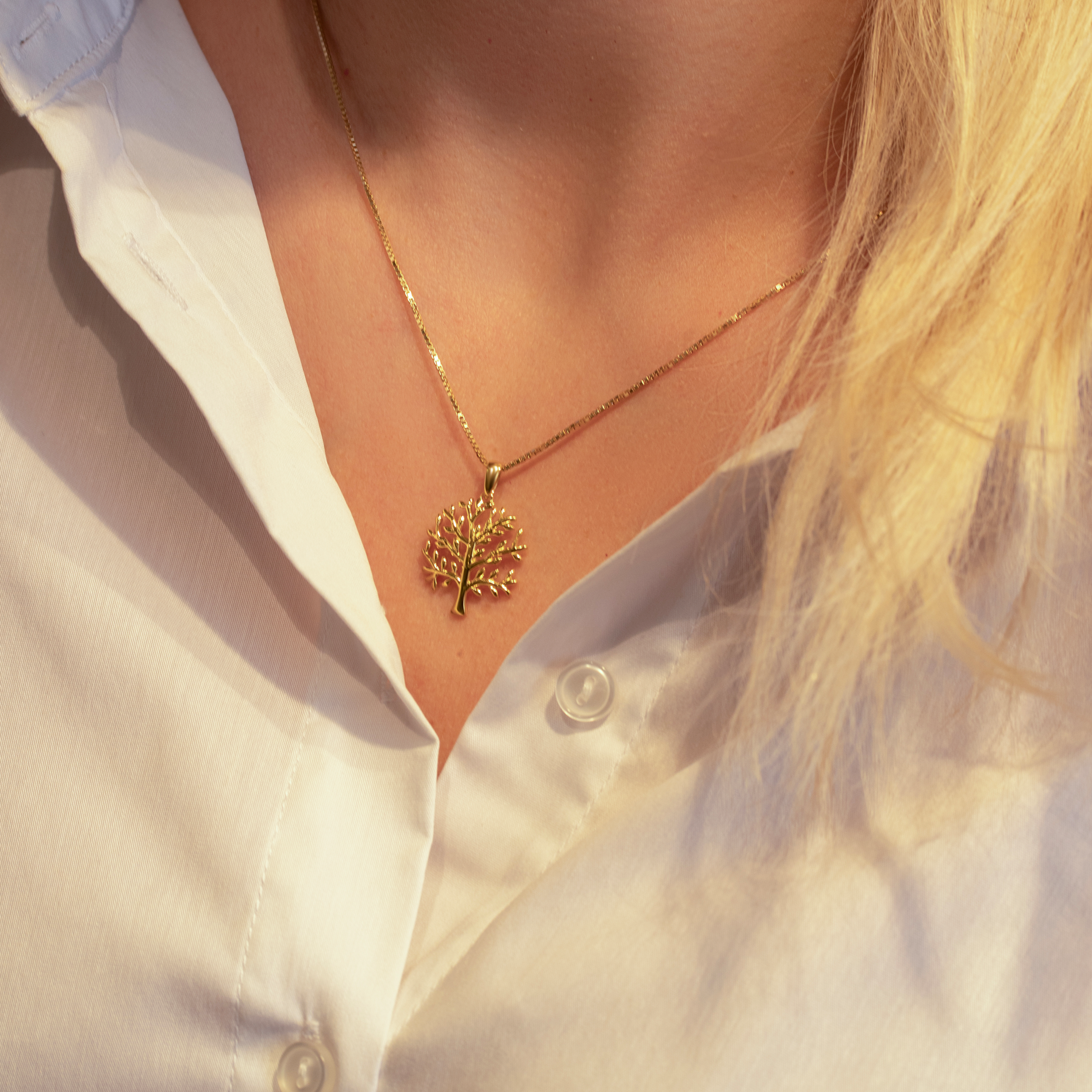 Leaf halskæde er et feminint og tidløst smykke, inspireret af naturens organiske former. Vedhænget er udformet som et elegant træ med fine, polerede grene, der giver et let og harmonisk udtryk.