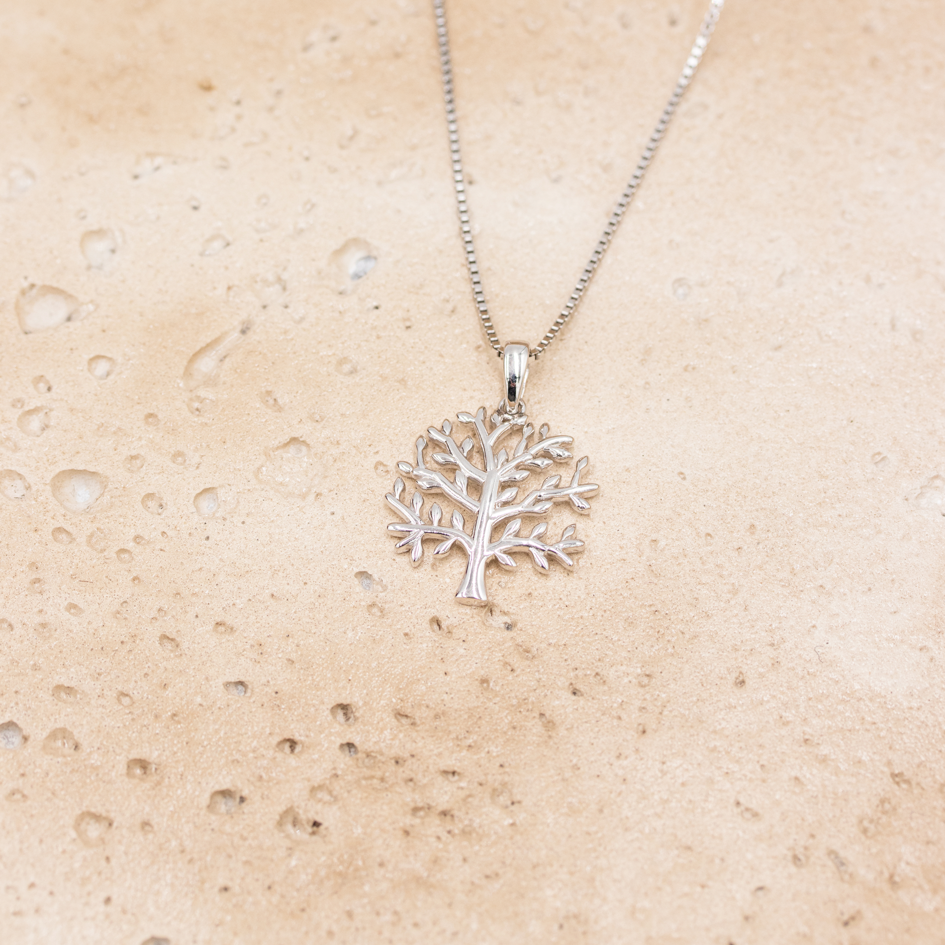Det blankpolerede sølv fremhæver detaljerne i grenene og skaber et tidløst design, der kan bæres alene eller kombineres med andre smykker. En klassisk halskæde med et personligt præg – velegnet til både hverdag og særlige anledninger.