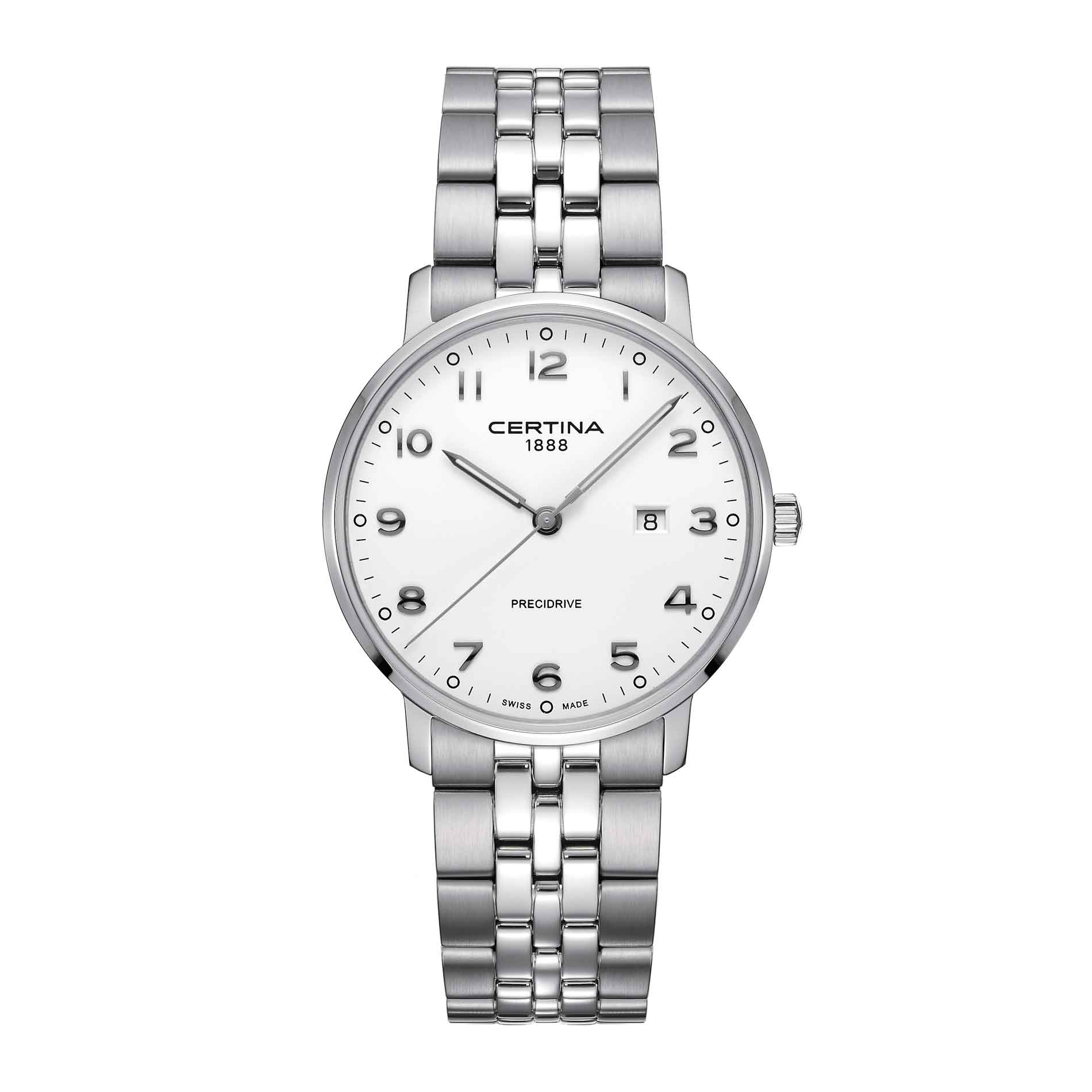 Certina DS Caimano ur kombinerer elegance med pålidelig ydeevne. Den skinnende rustfri stållænke tilføjer et strejf af stil til dette tidløse ur. Med en vandtæthed på 10 ATM er uret egnet til svømning og badning.