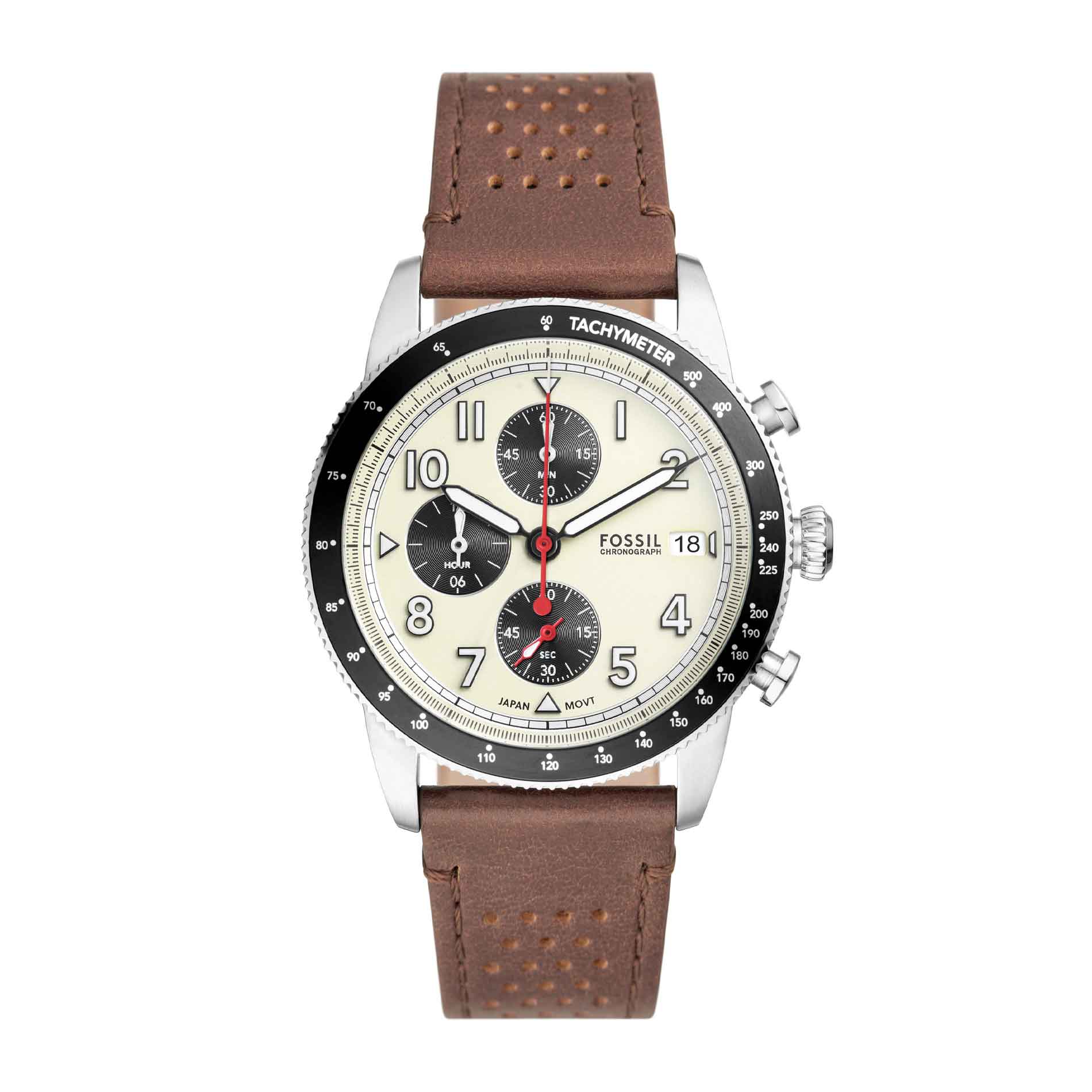 Fossil Sport Tourer er det ideelle ur til den eventyrlystne sjæl. Dette ur kombinerer robust rustfrit stål og læder i en perfekt balance mellem stil og funktionalitet. Med en sølvfarvet urkasse, en cremefarvet urskive og en brun læderrem udstråler dette ur både elegance og robusthed. Den kvartsdrevne mekanisme sikrer nøjagtig tidtagning, mens kronograf-funktionen tilføjer praktisk anvendelighed til dette sportslige ur.