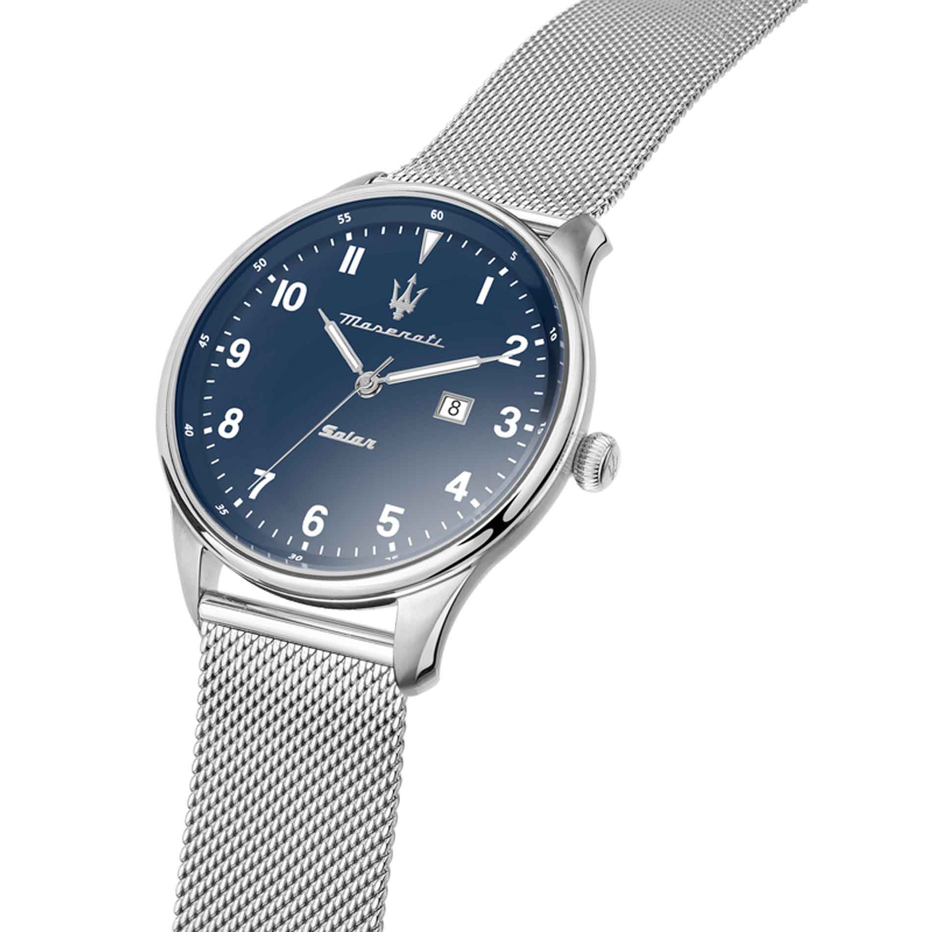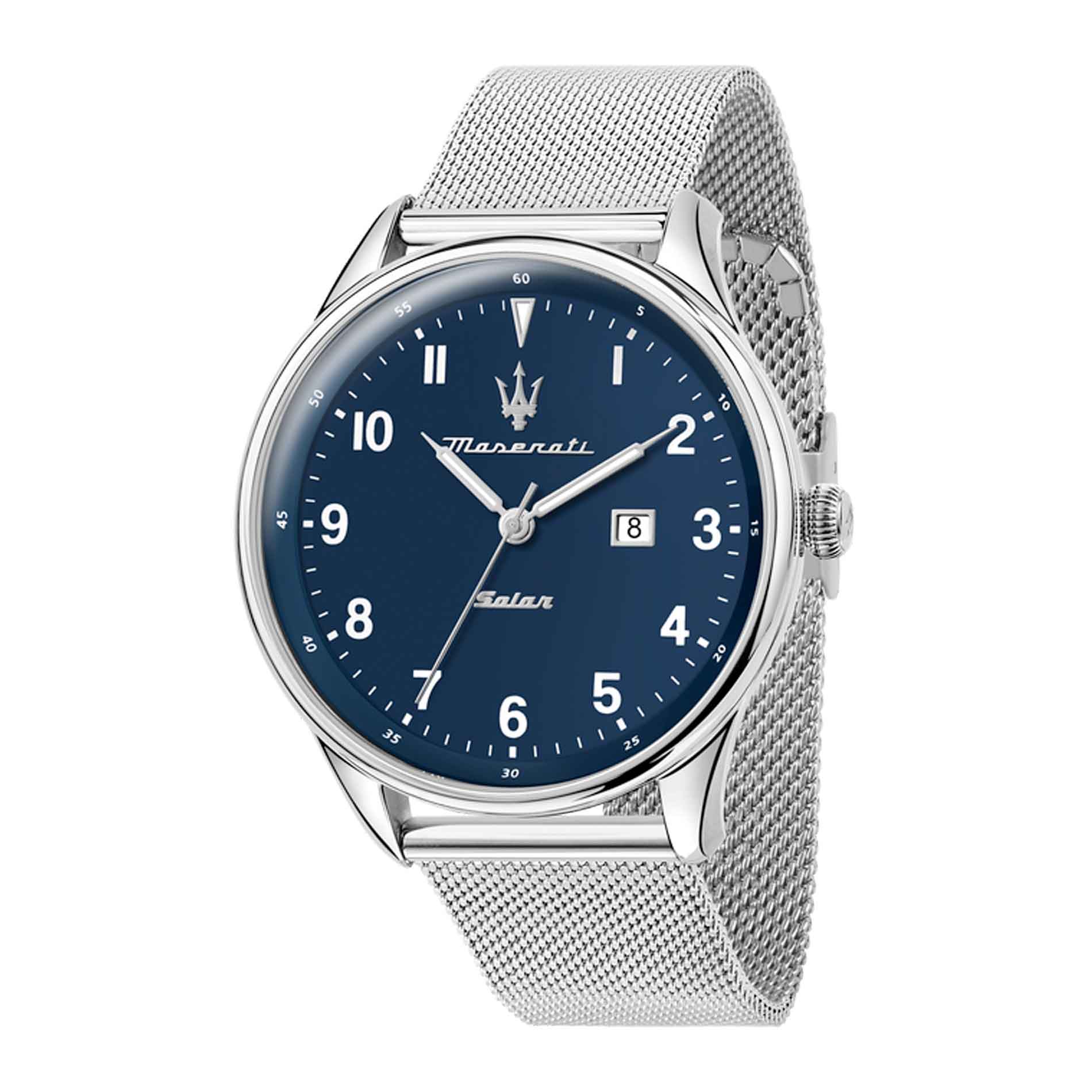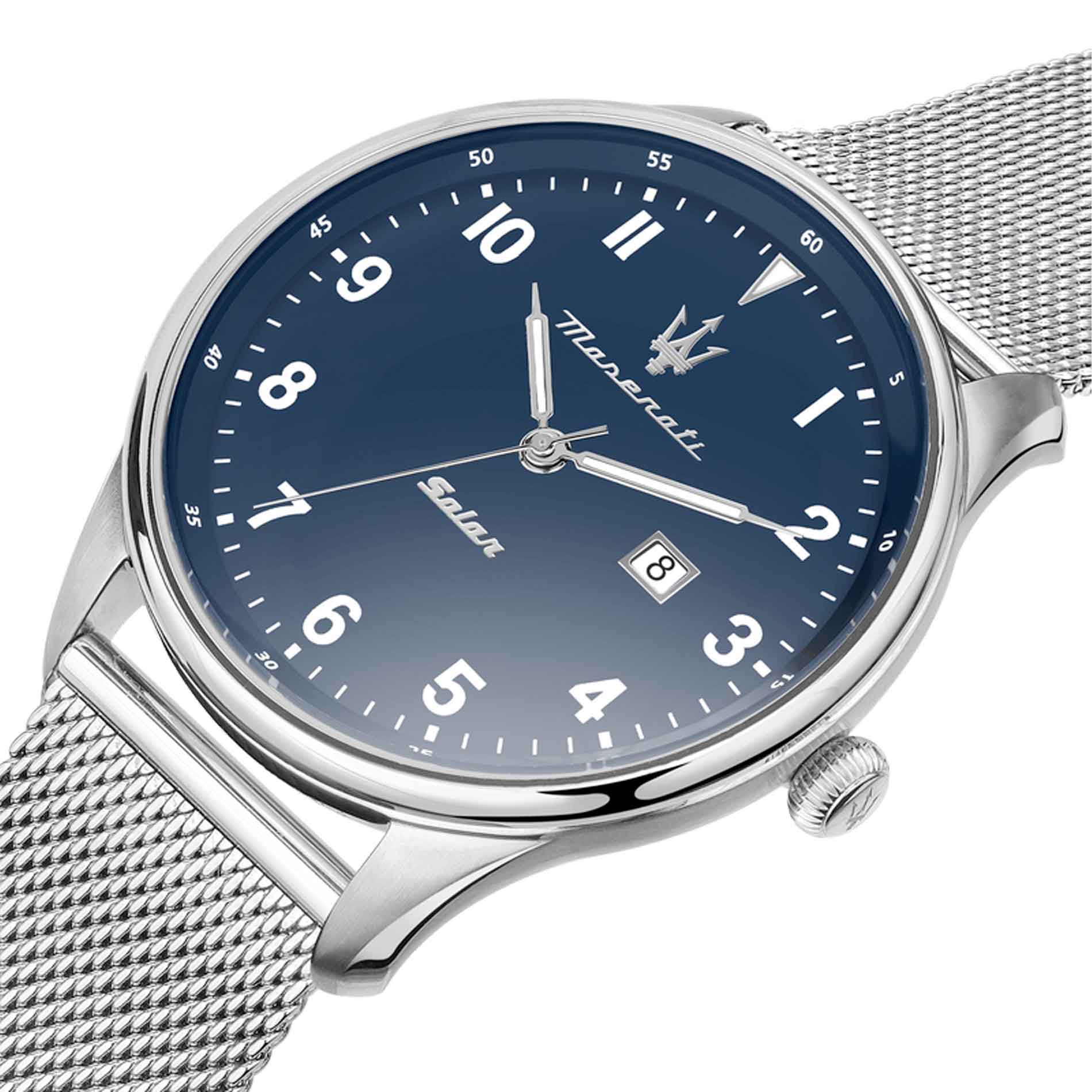 Maserati præsenterer Tradizione - et ur, der forener klassisk elegance med moderne designelementer. Med en imponerende diameter på 45 mm og en børstet/poleret stålurkasse udstråler dette ur styrke og raffinement. Mesh lænken tilføjer en moderne og luksuriøs dimension. Den blå urskive med tydelige tal og selvlysende visere sikrer let aflæsning i alle lysforhold. Uret, udstyret med kvartsurværk og dato, leverer præcision og funktionalitet. Med 10 ATM vandbeskyttelse er dette Maserati-ur en pålidelig ledsager til enhver lejlighed.