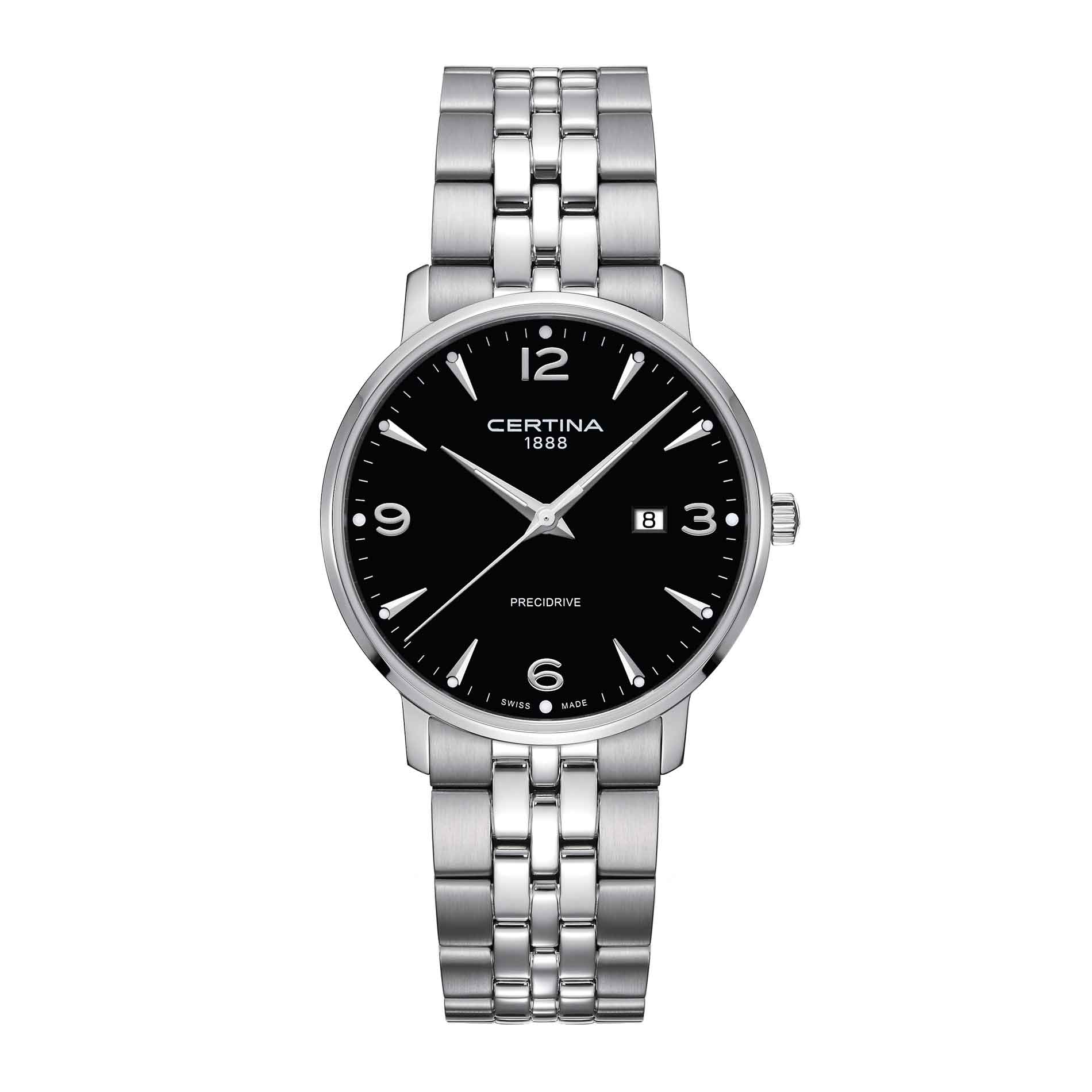 Certina DS Caimano er et sofistikeret herre armbåndsur med et elegant og tidløst design. Med sin sorte urskive, sølvurkasse og stållænke udstråler uret både elegance og holdbarhed.